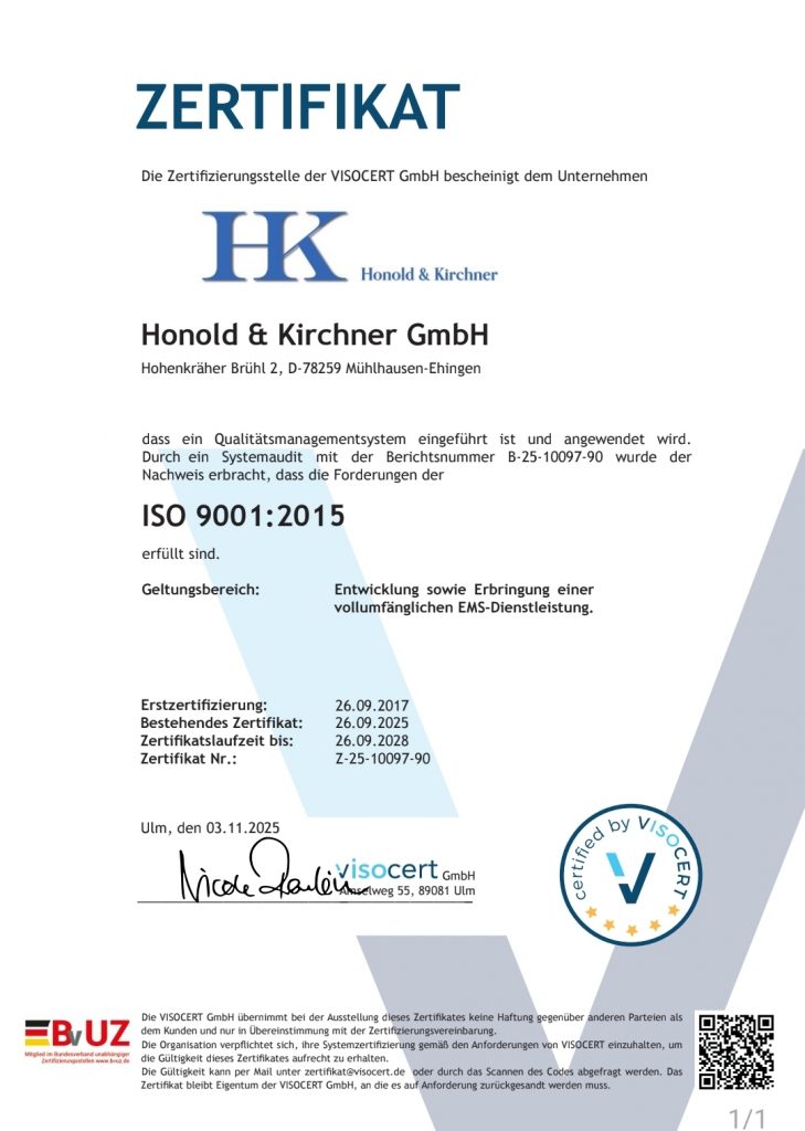 Die Honold & Kirchner GmbH ist Ihr zertifizierter Partner im Bereich Electronic Manufacturing Services (EMS) – mit jahrzehntelanger Erfahrung. Durch die Kombination aus hochmodernen Maschinen und einem fundierten Erfahrungshorizont bieten wir Ihnen herausragende Lösungen für sämtliche Anforderungen der Elektronikfertigung. Unsere Expertise deckt den gesamten Prozess der Fertigung elektronischer Baugruppen, Geräte und Systeme ab.